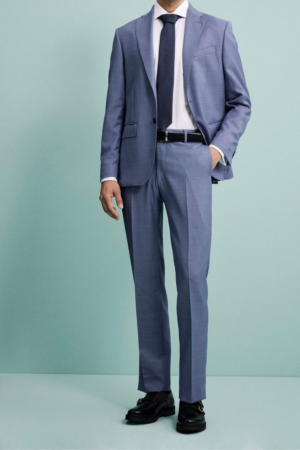 Distinguetevi con stile grazie a questo raffinato abito uomo slim fit in una sofisticata tonalità di blu. Realizzato in tessuto leggero e traspirante, questo completo è l’equilibrio perfetto tra eleganza classica e modernità.
