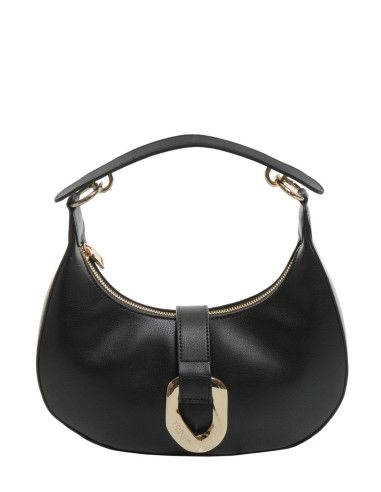 Doppia tracolla removibile e regolabile, dettaglio medaglione con logo in lettering oro con bottone magnetico.