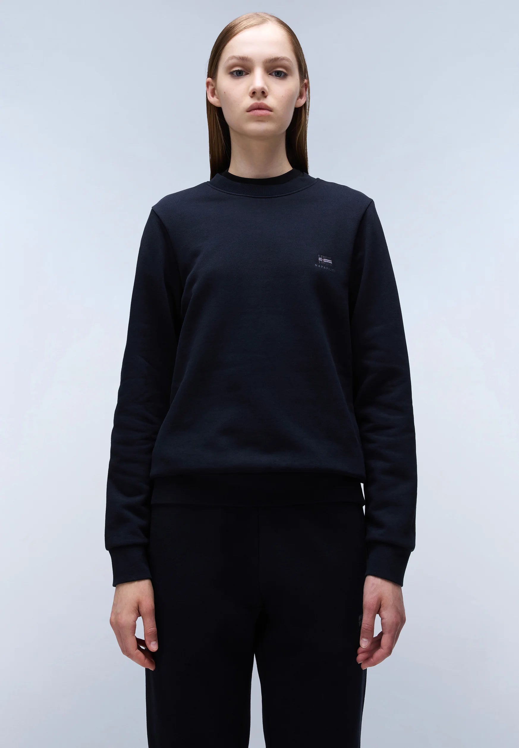 La felpa Napapijri Nina Winter da donna è realizzata principalmente in cotone e presenta un collo rotondo e dettagli distintivi di Napapijri sul petto.