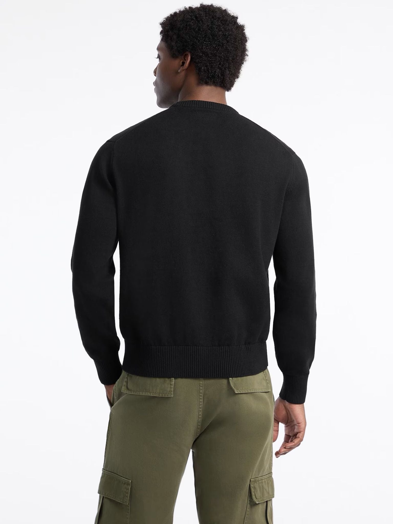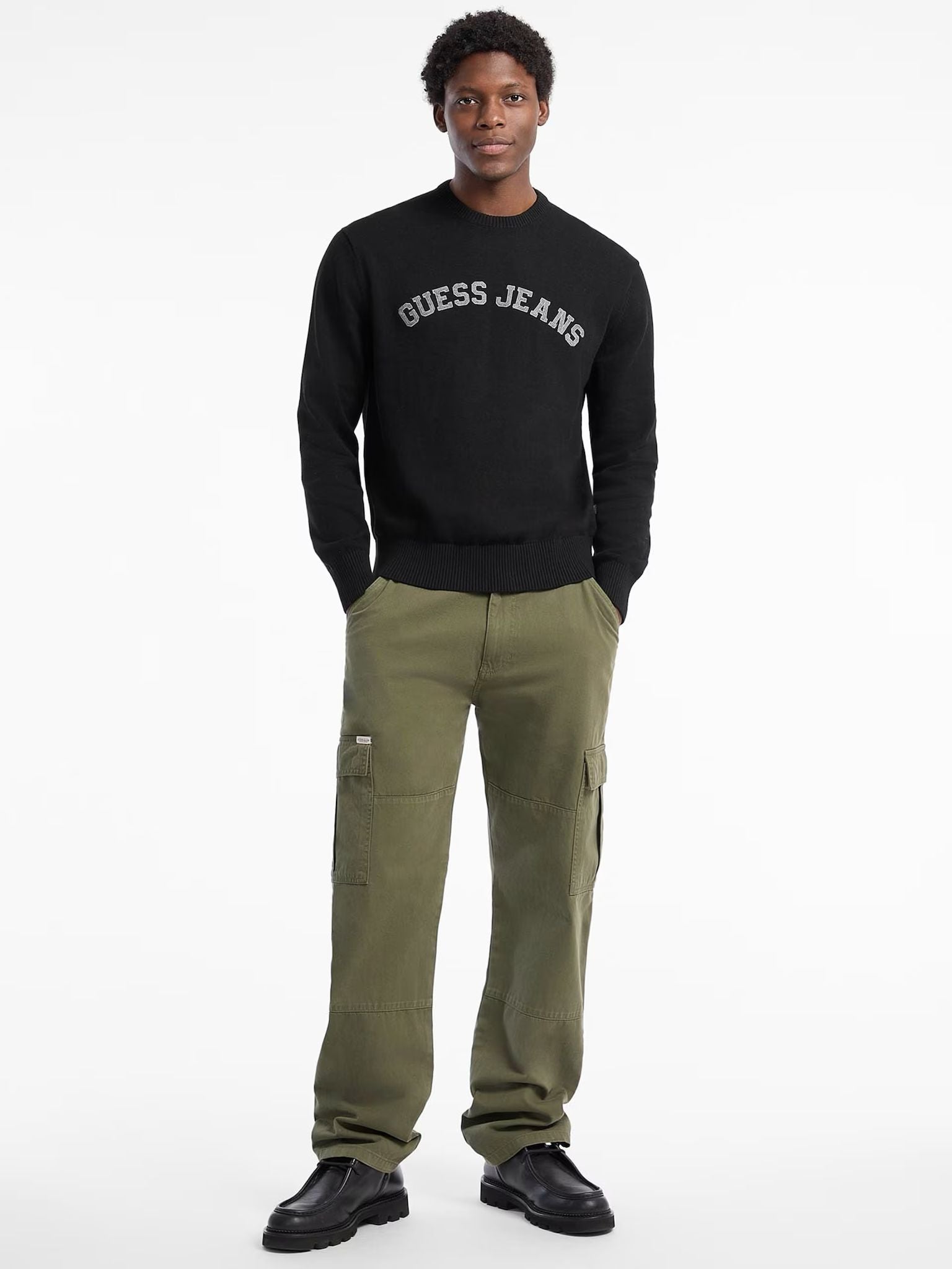 Eclettico urban con fascino rilassato. Maglione in cotone con girocollo e maniche lunghe, logo ricamo oversize. Realizzato in cotone organico, una scelta eco-sostenibile.