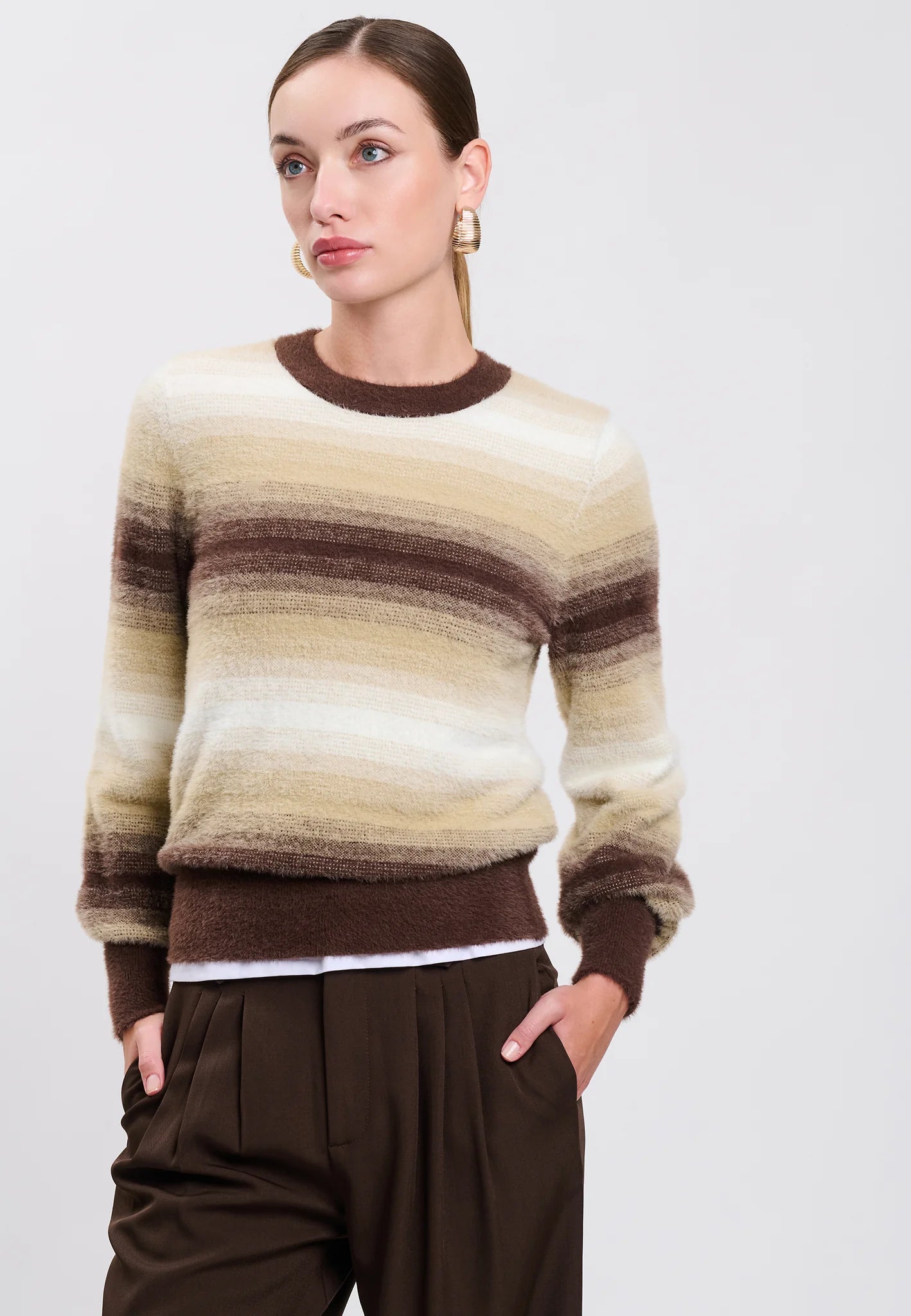 Questo maglione è decorato con un bellissimo motivo a sfumatura che gioca sui toni della stessa nuance. Realizzato in maglia di misto viscosa con effetto pelo, presenta un taglio comodo e orli a costine. Classico ma al contempo moderno, è ideale da indossare su un pantalone sartoriale e stivali alti per un look di stagione impeccabile.
