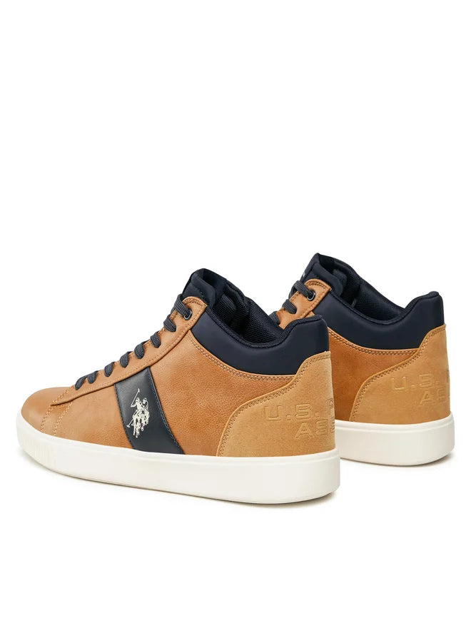 Scarpa da uomo in pelle, della US Polo Assn. Realizzata al 100% in pelle di qualità superiore. Il famoso logo della US Polo Assn è posizionato sul lato e sulla linguetta della scarpa, a conferma della sua qualità superiore. La suola in gomma è realizzata al 42% in gomma riciclata e antiscivolo, mentre la soletta, che avvolge il piede, è realizzata in materiale PET riciclato al 100%, con una sensazione di morbidezza al tatto.