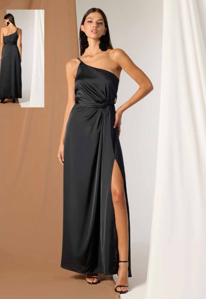 Questo vestito nero lungo è progettato per esaltare la tua femminilità e il tuo stile personale. La linea monospalla aggiunge un tocco di sofisticazione e raffinatezza, mentre lo spacco laterale crea un effetto seducente e glamour.